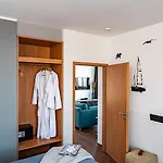 Værelserne på Hafenmeisterei Hotel Seinsche har en balkon, en personlig værdiboks og en sofa samt separat toilet og en bruser.